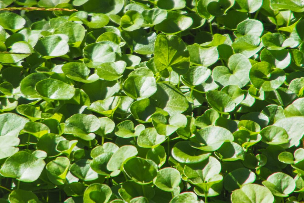 ディコンドラ・エメラルドフォールズは丸い葉が可愛らしい耐寒性多年草(宿根草)。気温がマイナスになると地上部は枯れます。