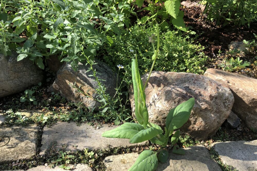 良く見ると、あちこちにこぼれ種が発芽していました。